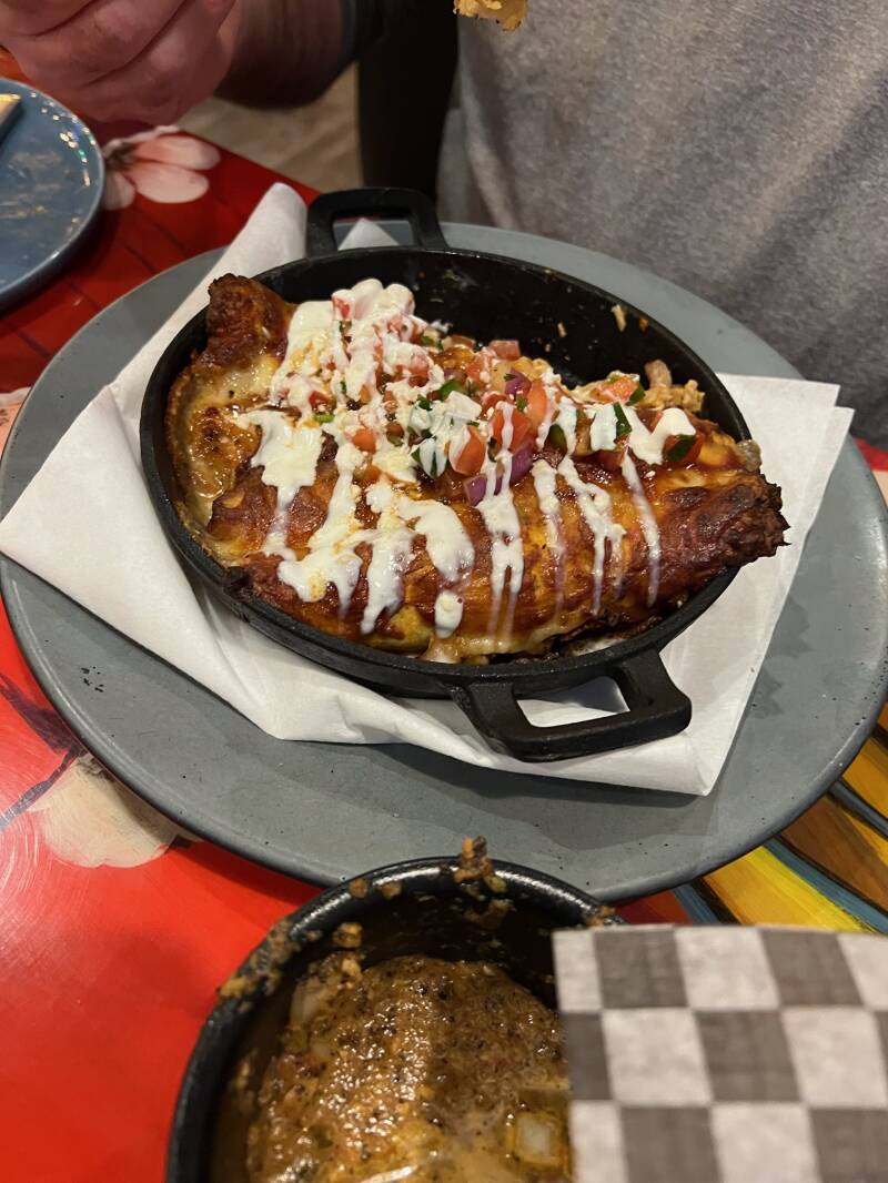 Food: B- The good--the seasoned chips w/Salsa; + Chip Flight ($18), the pork tacos ($18) that I took 2 out of 3 from my wife (even though they fell apart pretty easily). The bad--Strawberries & Cream Margarita was way too sweat, even for me. The Burrito Frito wasn't for me either--chicken chunks were huge.